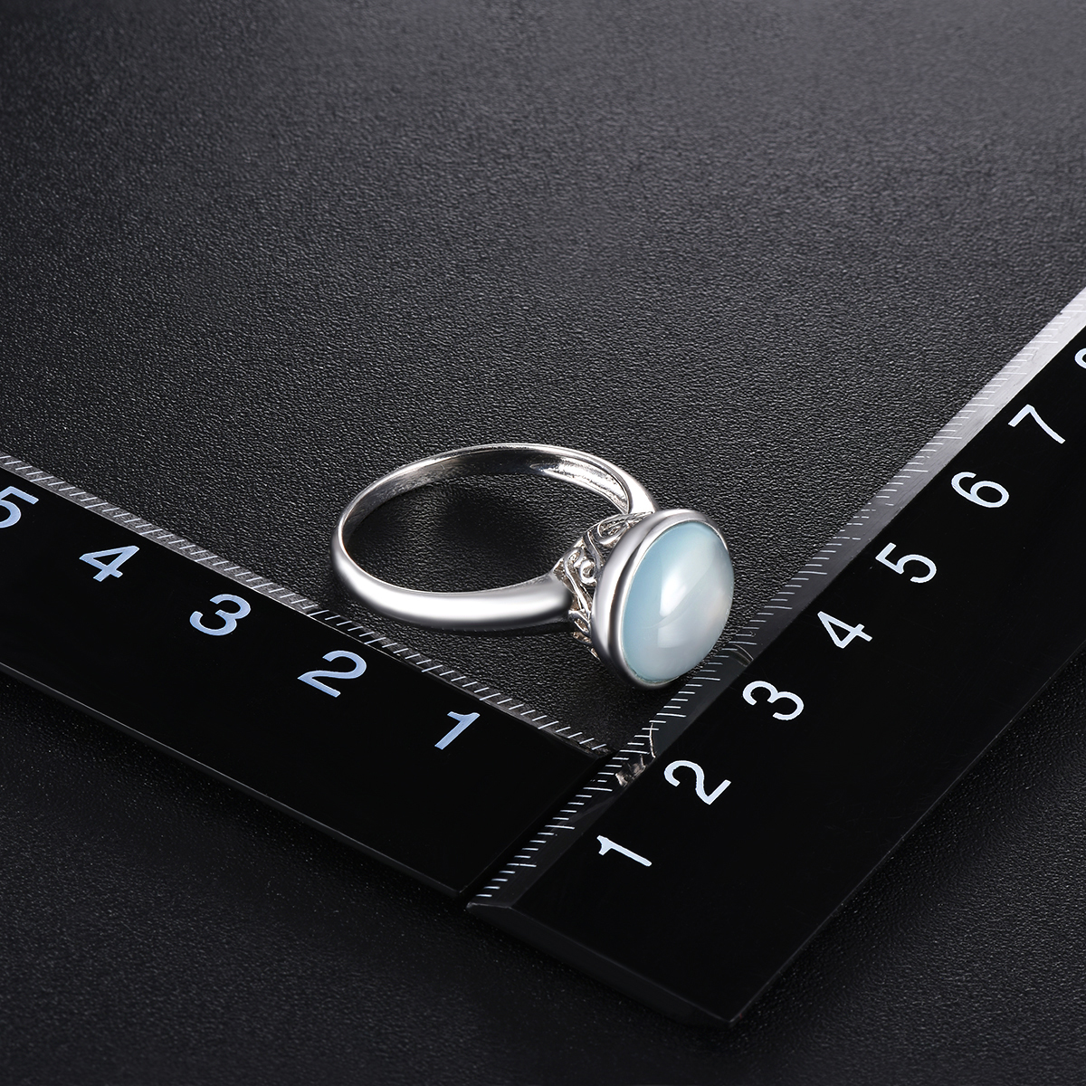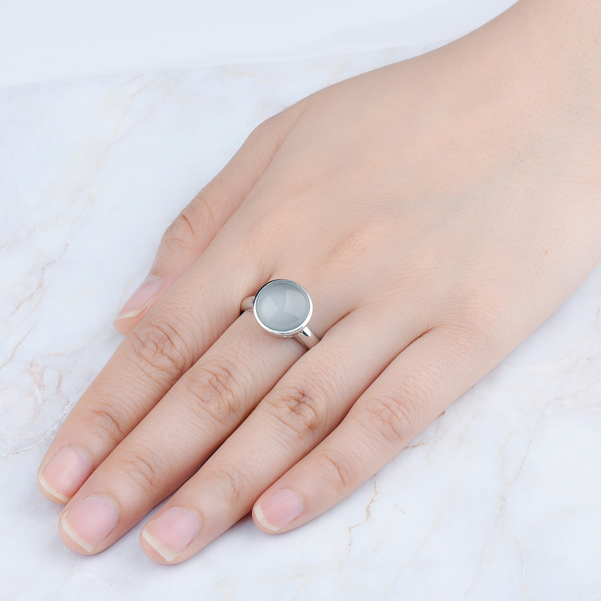 Real 925 Sterling Silver Simple Design Women's Chalcedony Wedding Ring