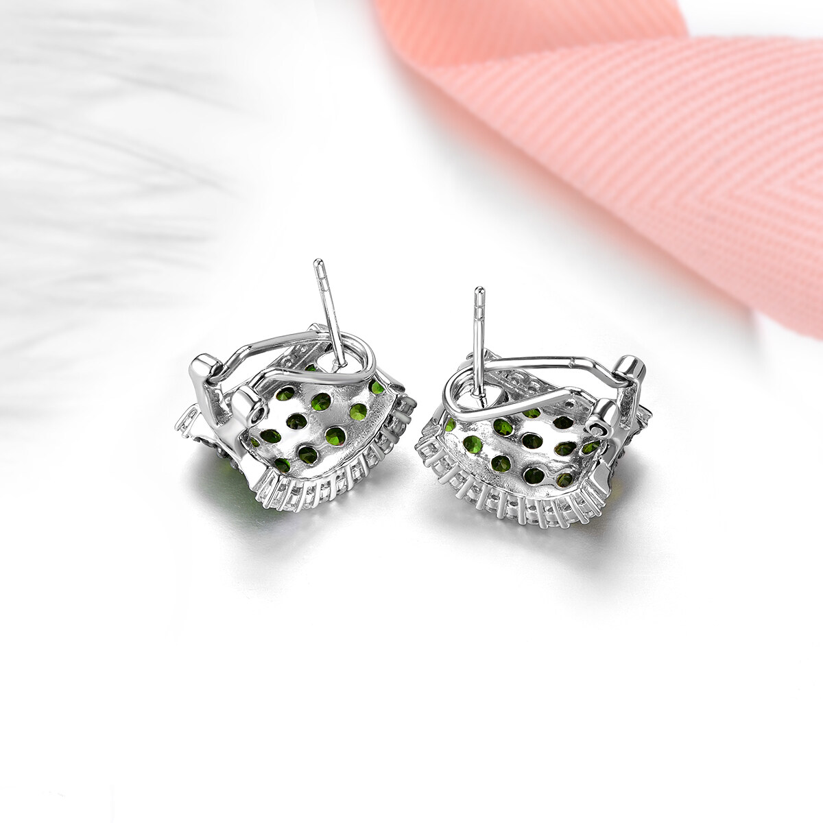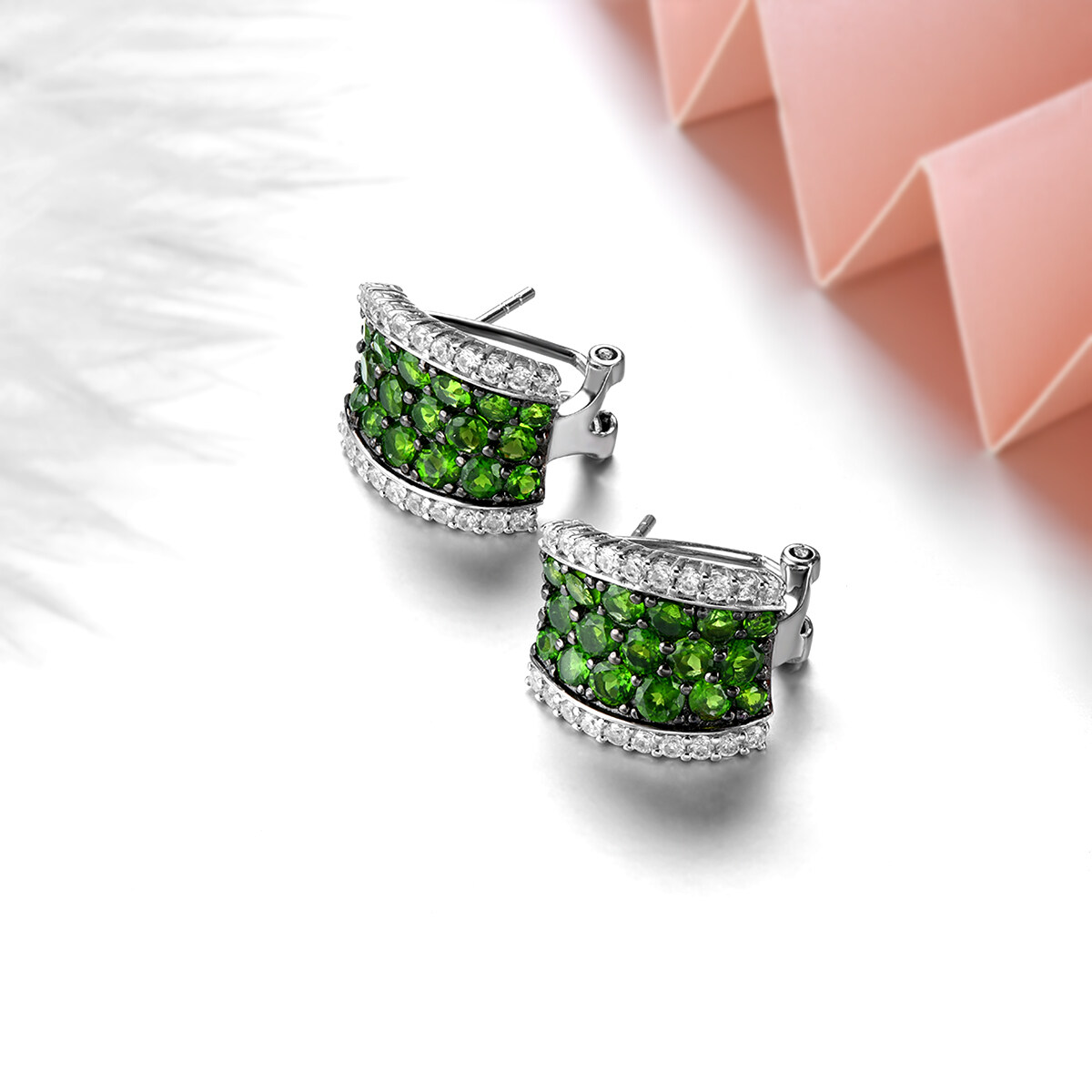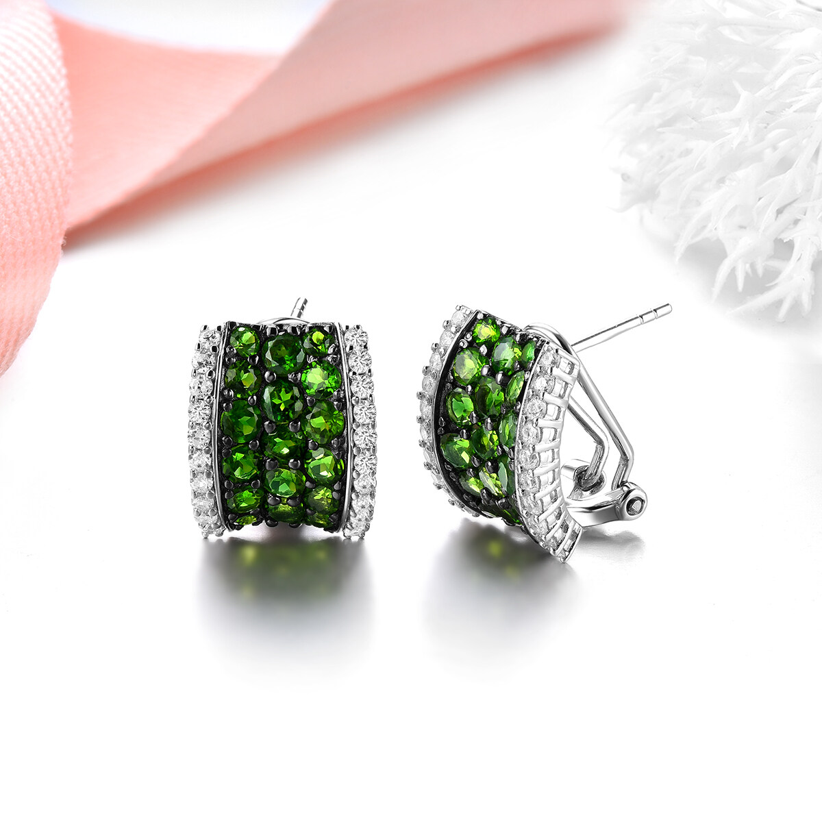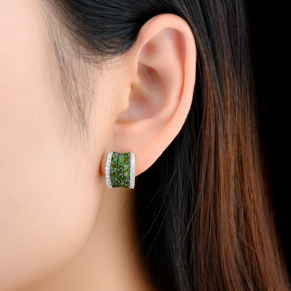 Lohaspie Jewelry Genuine 3.5 Carats Clip Earring Silver 925 Original Natural Chrome Diopside Clip Earring Round Cut Gemstone Earrings For Women Sterling Silver 925 Jewelry