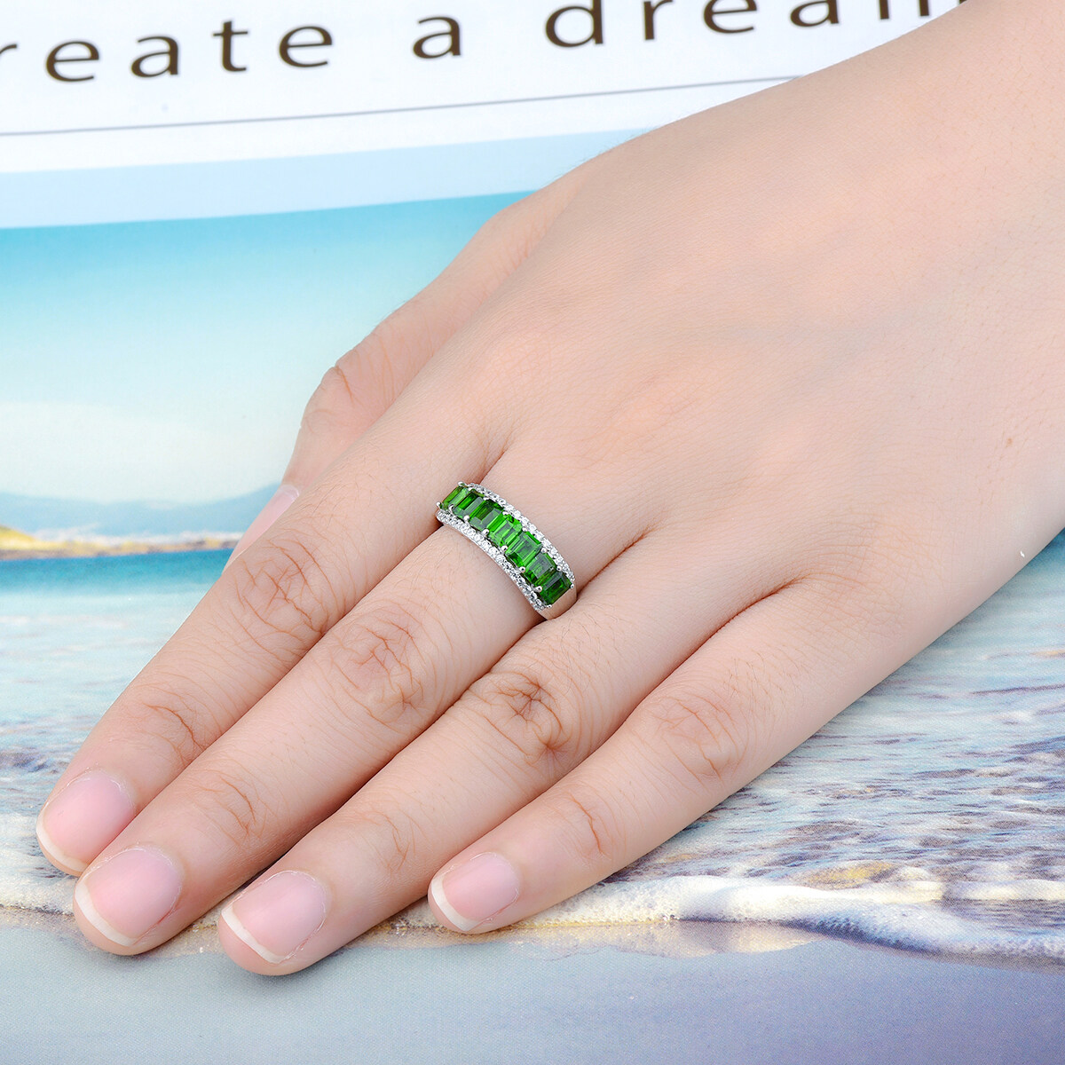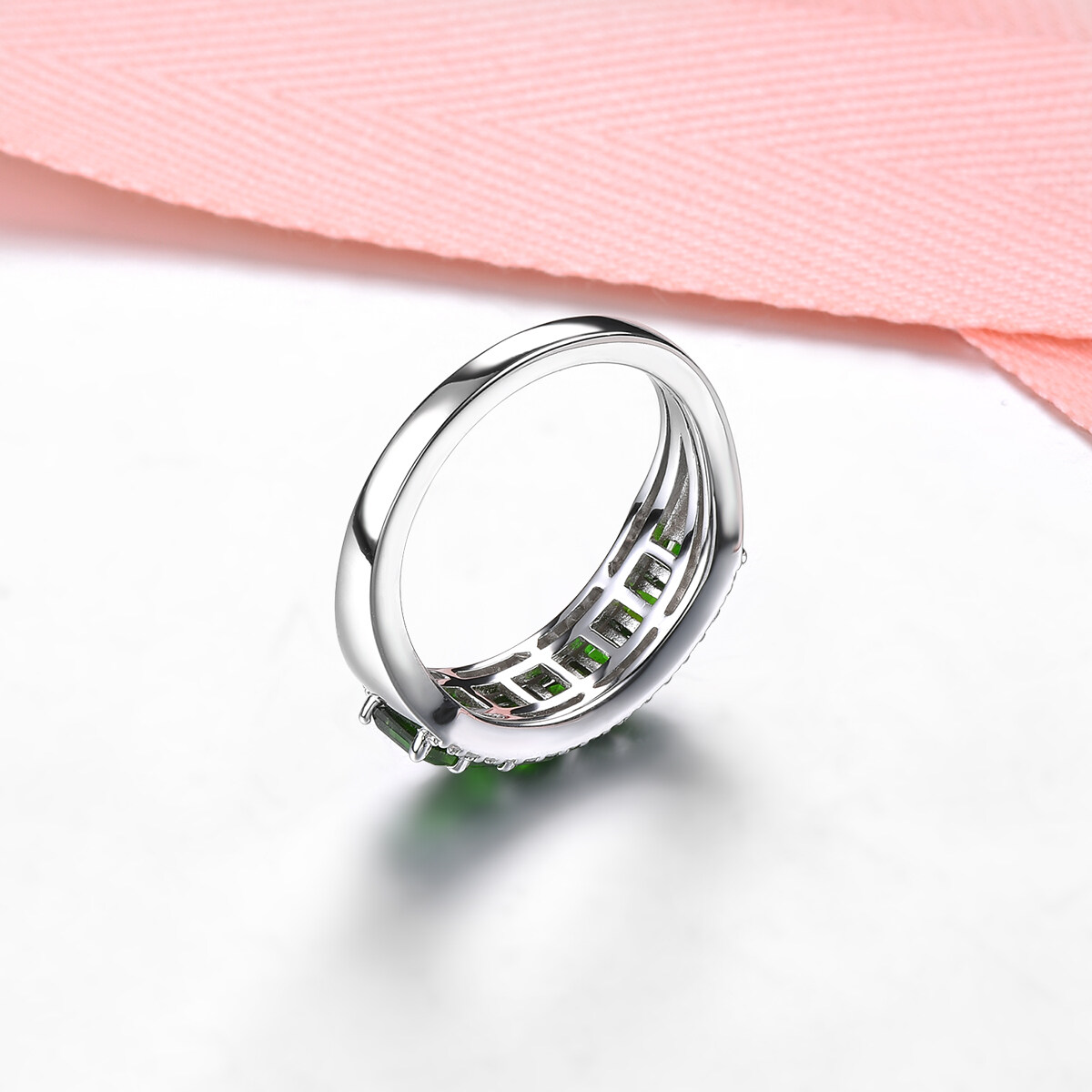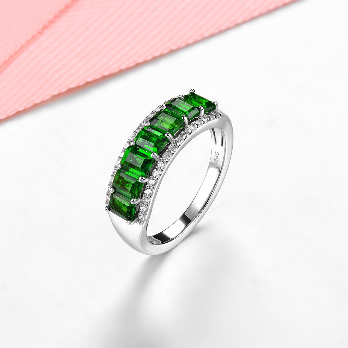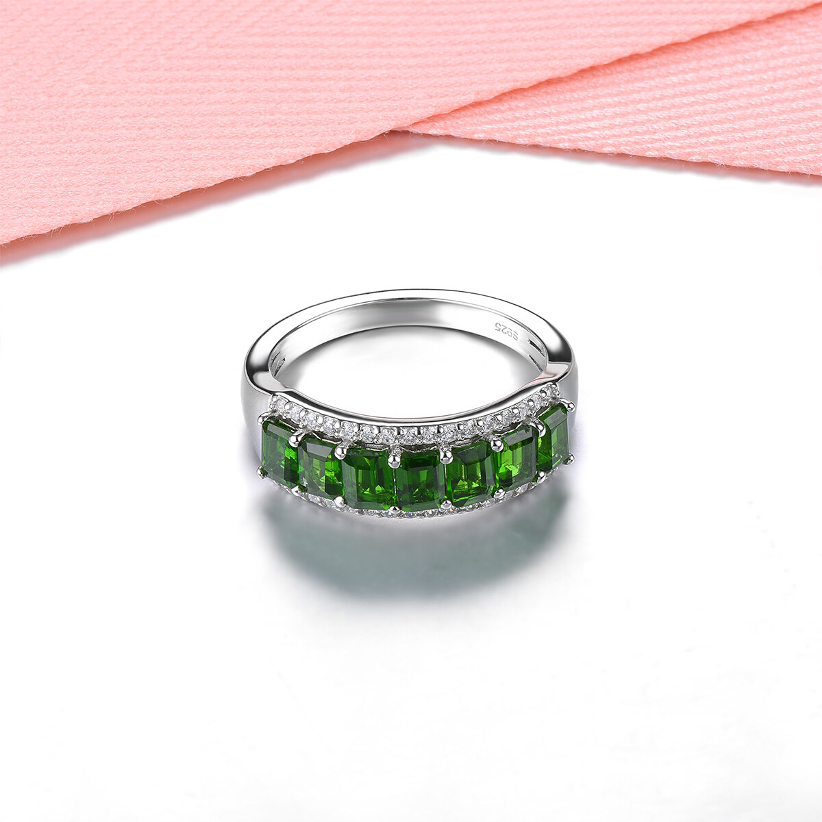 Lohaspie Jewelry Genuine 1.6 Carats Silver Ring For Women 925 Original Natural Chrome Diopside Ring Green Gemstone Birthstone Ring Jewelry Gift