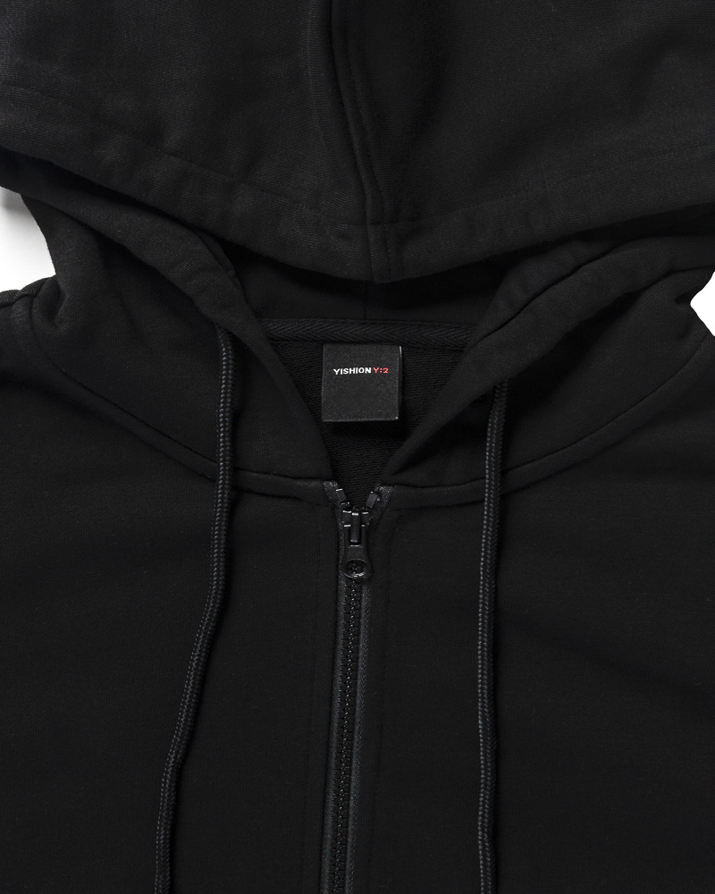 Yishion Men Solid Colour Zip-Up Jacket with Kangaroo Pockets (Black)
