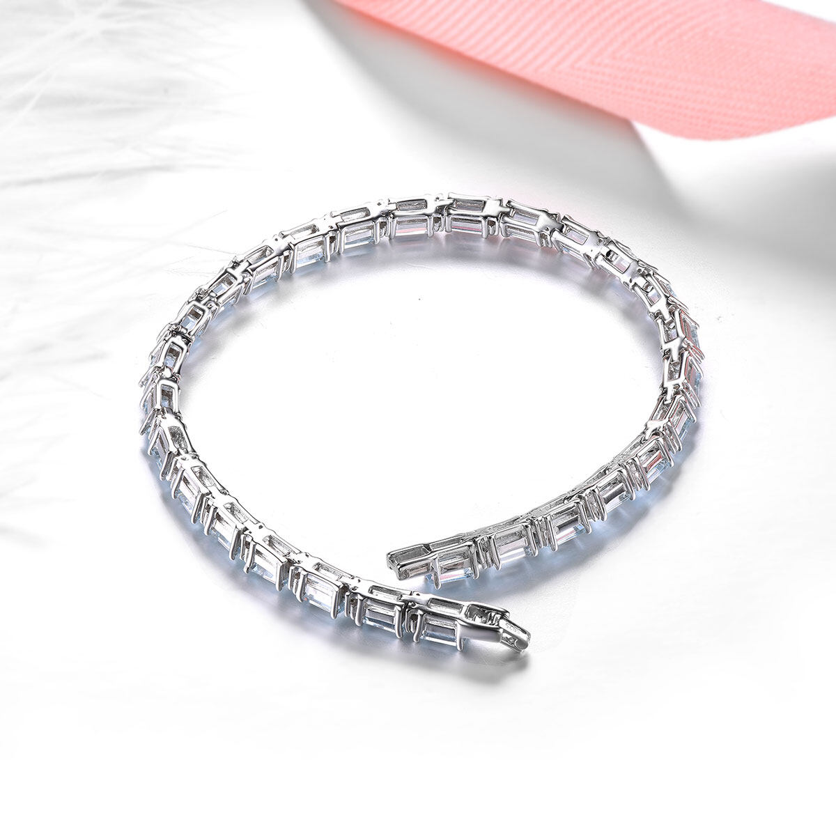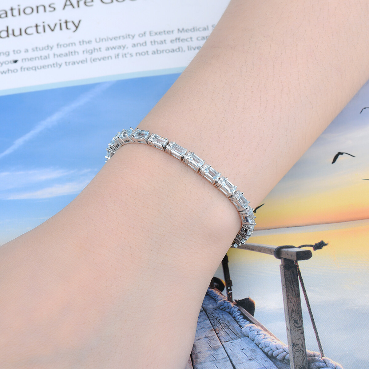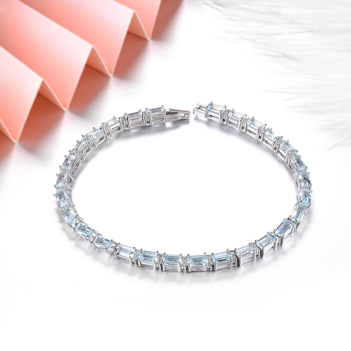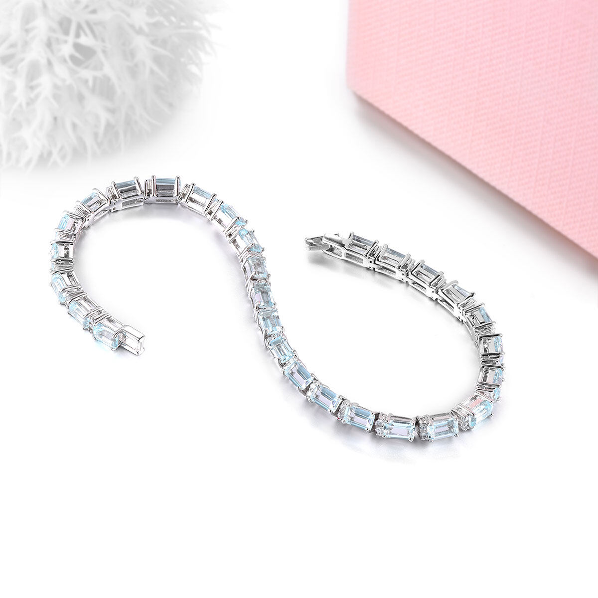 Lohaspie Jewelry Original 8 Carat Solid Sterling Silver 925 Bracelet Natural Aquamarine Bracelet Light Blue Gemstone Aquamarine Bracelet For Women Jewelry Mother's Day