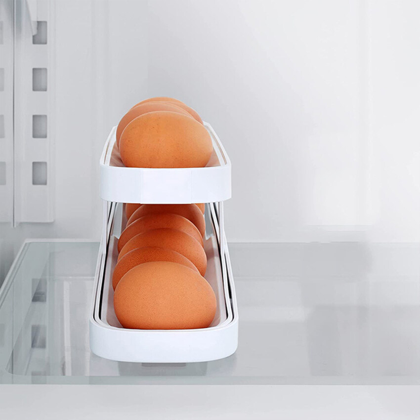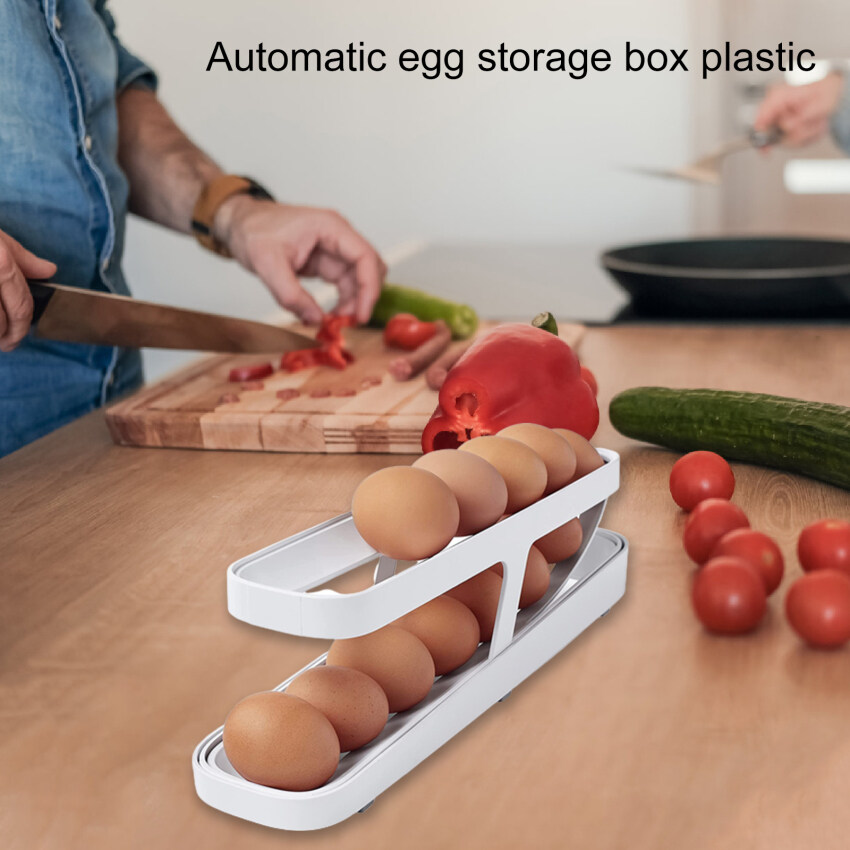 Automatic Eggs Storage Box Plastic Rolling Eggs Holder Basket Container Dispenser Organizer Closet for Fridge Kitchen Egg Tray