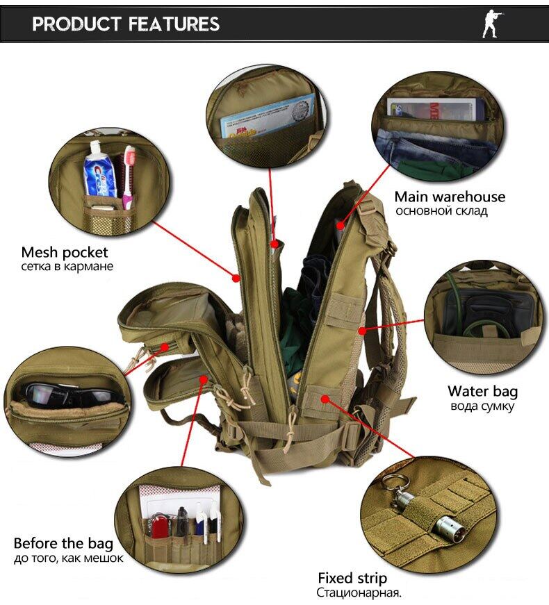 • Function:Tactical Backpack. Fishing Bags. Camping Bags