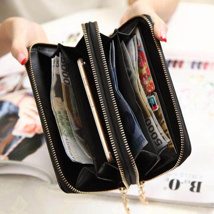 High quality PU leather Wallet Korean Style Double Zipper Ladies Large Capacity Long Patent Mobile Phone Clutch Wallets Purse For Women Girls