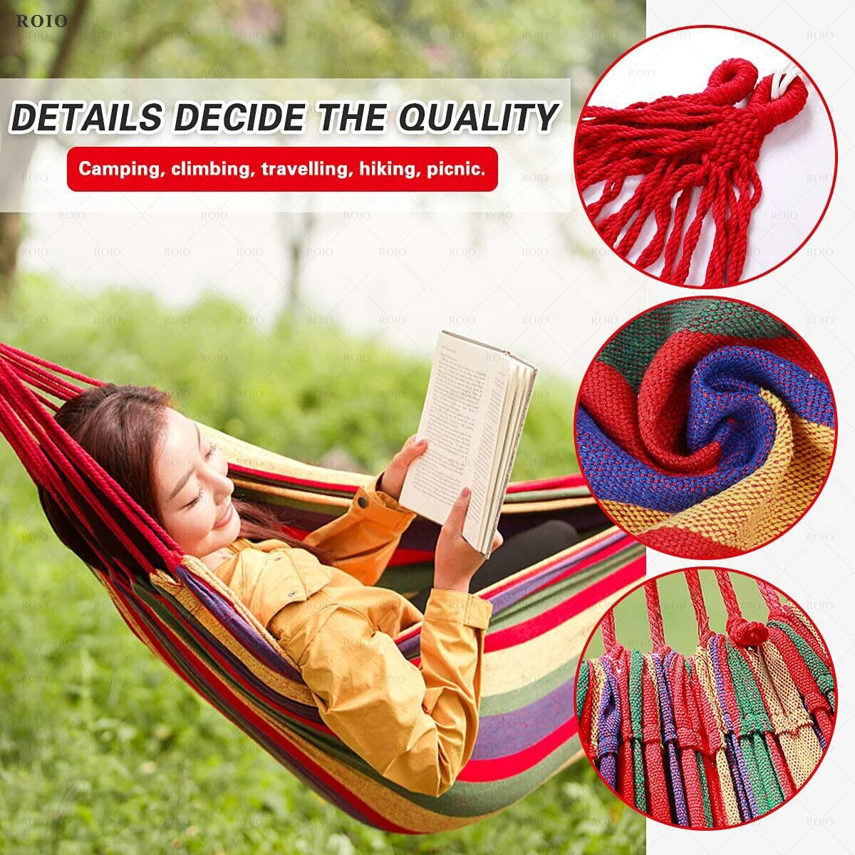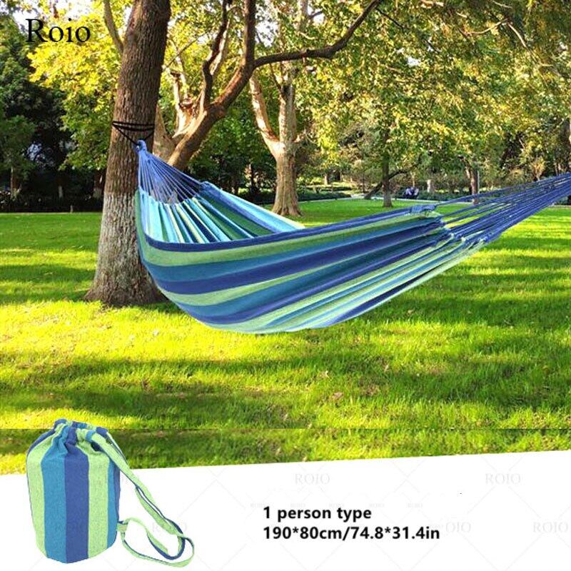 Camping Hammock Portable Hammock Striped Canvas Single Double Hammock Travel Hanging Bed Camping Accessories Outdoor Hammock