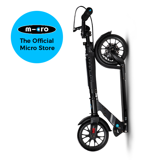 The Micro Metropolitan Deluxe Black has an ergonomic design making it the perfect all rounder. With its wide, curved T-bar and large wheels it offers an unmistakeable cruiser feeling. In addition, the front suspension provides more driving comfort. The integrated tube light and the reflectors on the brake ensure a safe ride in the dark.   The front handbrake is handy for easy urban use. A cool and practical companion for everyday life! For good visibility, it has a micro Tubelight on the handle bar.