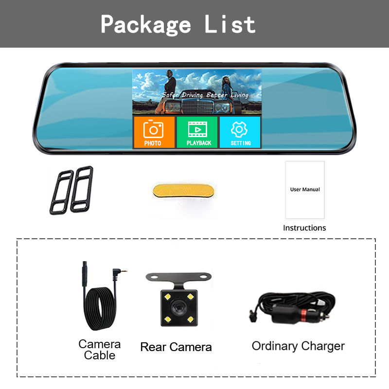 10. ● Basic Features: G-Sensor, Cycle Recording, Motion Detection, Parking Monitor, Time&Data Display, Wide Dynamic Range, Picture in picture display, ON/OFF Automatically