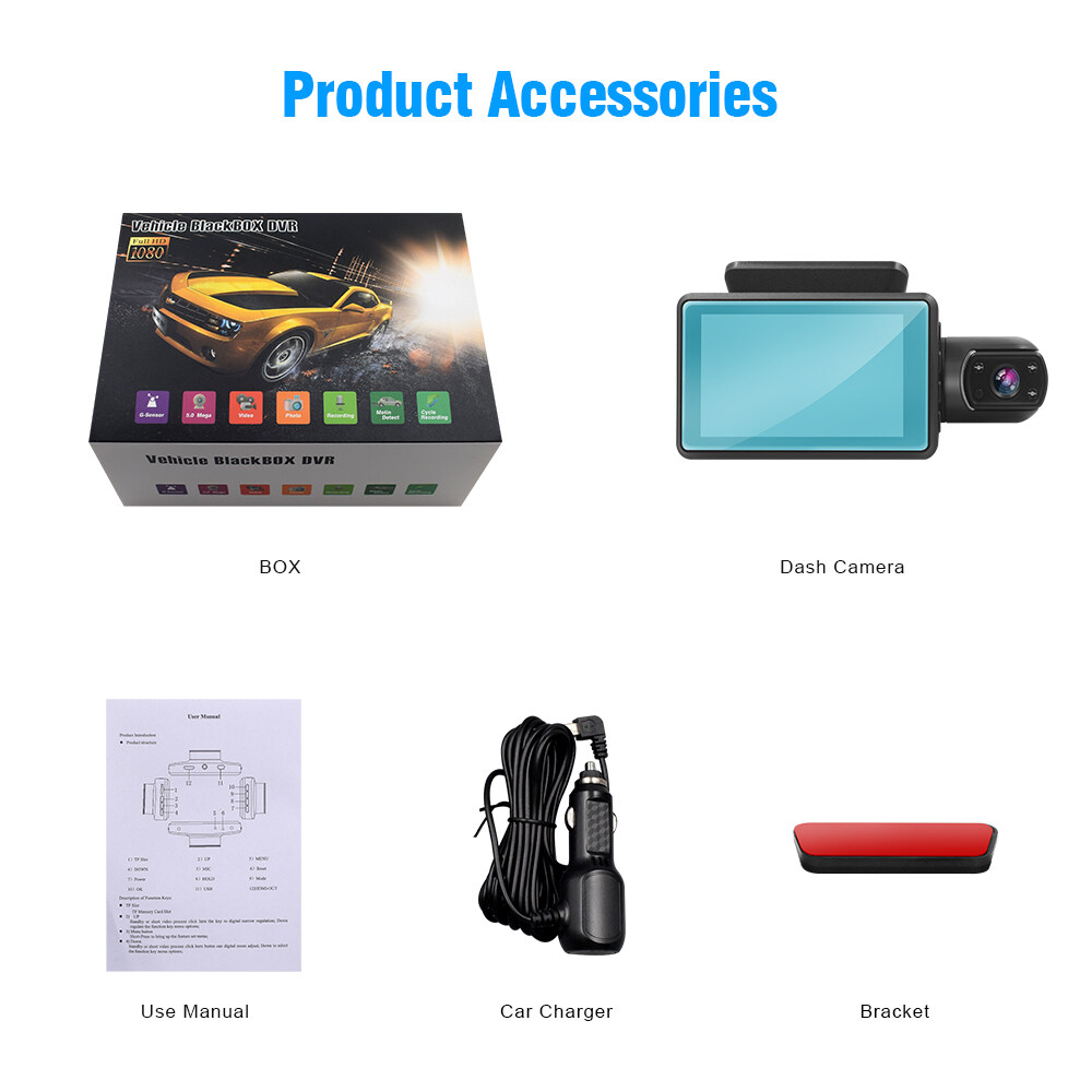 the dash camera features 3-inch large scratch-resistant IPS FHD screen for playback videos and pictures