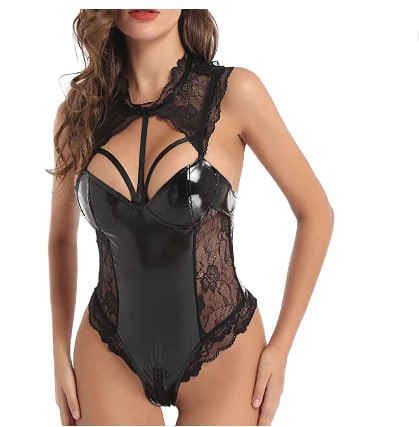 • Bodysuit lingerie made of lace and faux leather ensures an -soft and comfortable experience for you.